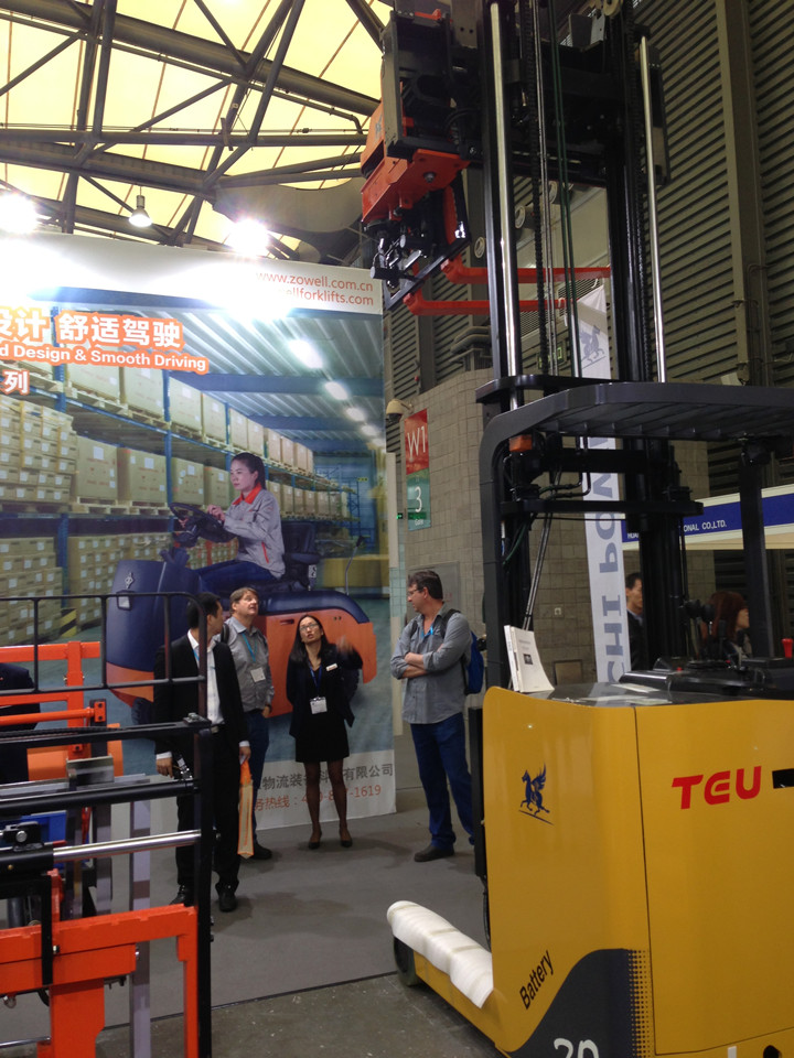 2015年10月27日,2015年亞洲國際物流技術與運輸係統展覽會(2015 CeMAT ASIA)在上海新國際博覽中心如期舉行。作為參展商的一員,我公司精心準備了多款獨具特色的叉車屬具,有傾翻功能的翻箱器、無線智能稱重貨叉、客戶定製大噸位紙卷夾、方便隨車搬運的物流搬運小車、適用於窄通道堆垛貨物的三向堆垛叉車等,參觀的國內外客戶們尤其對我公司的窄巷道的三向堆垛叉車非常感興趣,該叉車是基於平衡重式內燃或電動叉車、前移式叉車而改進設計製造,對地坪沒有特殊要求,為立體存儲和空間高效利用提供了一個經濟可行、快速實施的解決方案。