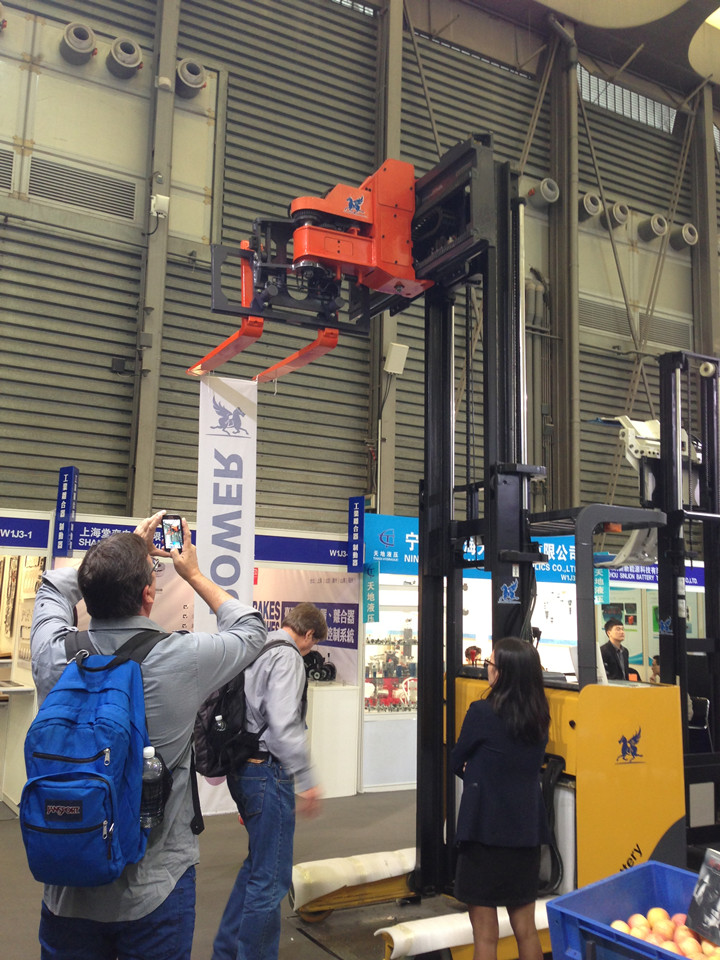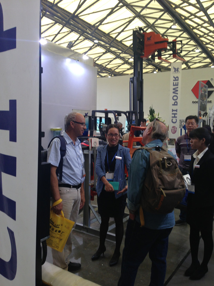 2015年10月27日,2015年亞洲國際物流技術與運輸係統展覽會(2015 CeMAT ASIA)在上海新國際博覽中心如期舉行。作為參展商的一員,我公司精心準備了多款獨具特色的叉車屬具,有傾翻功能的翻箱器、無線智能稱重貨叉、客戶定製大噸位紙卷夾、方便隨車搬運的物流搬運小車、適用於窄通道堆垛貨物的三向堆垛叉車等,參觀的國內外客戶們尤其對我公司的窄巷道的三向堆垛叉車非常感興趣,該叉車是基於平衡重式內燃或電動叉車、前移式叉車而改進設計製造,對地坪沒有特殊要求,為立體存儲和空間高效利用提供了一個經濟可行、快速實施的解決方案。